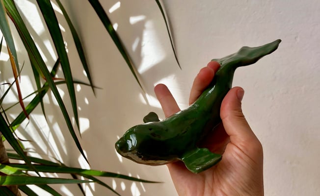 Le biscuit est ensuite émaillé ou patiné, pour lui donner brillance ou force, avec des recettes expérimentées, modifiées, répétées, pour donner toute sa présence à l'oeuvre.