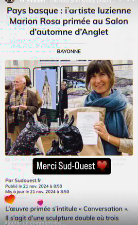 Les événements des derniers mois : Marion Rosa a eu le plaisir de faire partie des sélectionnés du Salon Adour-Bidasoa qui s'est tenu à Irun du 13 septembre au 13 octobre 2024, et a retrouvé le vénérable Salon d'Automne sur les Champs-Elysées à Paris pendant les vacances de la Toussaint 2024 (30 000 visiteurs...).